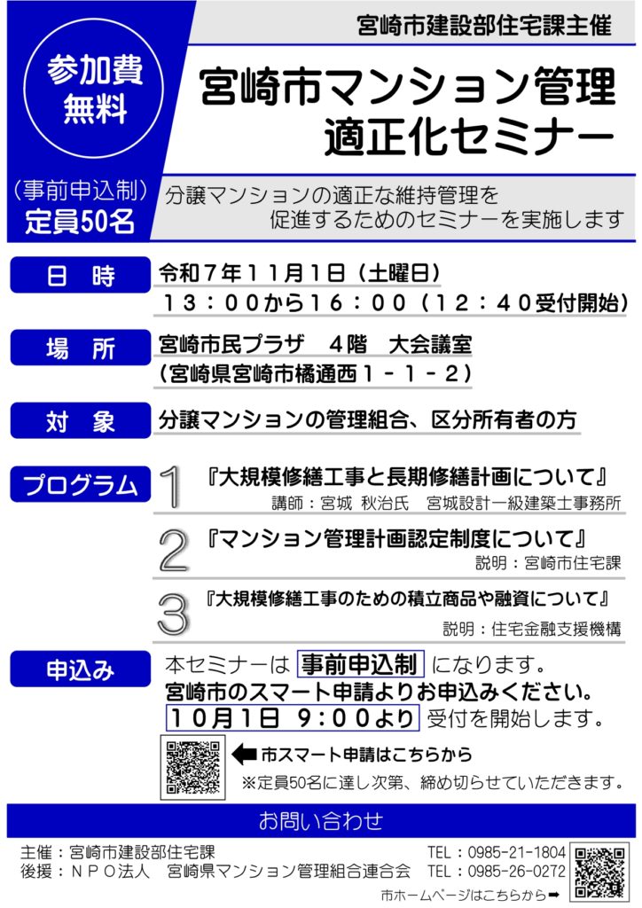 宮崎市マンション管理適正化セミナー(11/1)開催