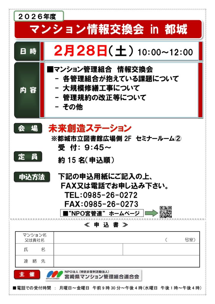 マンション情報交換会 in 都城(2/28)開催のお知らせ